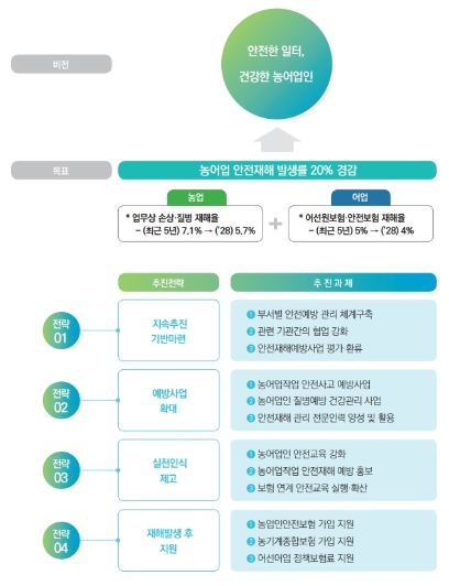 농어업 안전재해 예방을 위한 4대 전략은 △지속 추진 기반 마련 △예방 사업 확대 △실천 인식 제고 △재해 발생 후 지원이다.