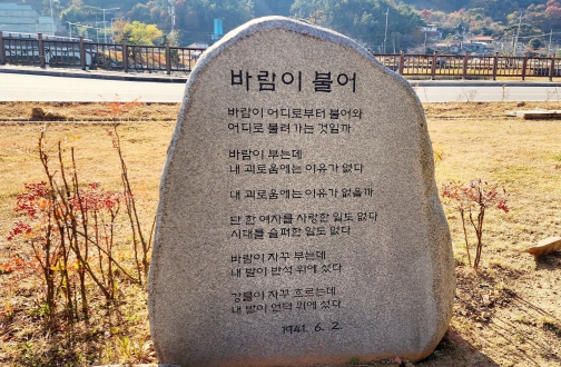 가옥 인근 ‘윤동주 시 정원’에는 서시, 별헤는 밤 등 유고집 ‘하늘과 바람과 별과 시’에 수록된 31편 전편이 시비로 세워져 있다.