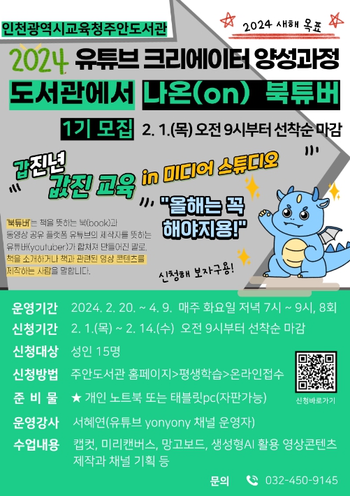 주안도서관 관계자는 “이번 유튜브 크리에이터 양성 프로그램이 시민들의 미디어 창작교육 요구에 부응하며, 지역사회의 건강한 미디어 독서 문화 조성에 기여하길 바란다”고 말했다.