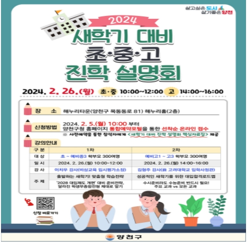 ![]() 양천구 ‘2024 새학기 대비 초중고 진학설명회 홍보 이미지 |