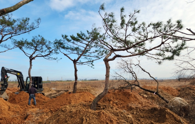 기증된 나무들은 영산강 정원이 조성될 강 저류지에 새롭게 뿌리 내리고 있다.