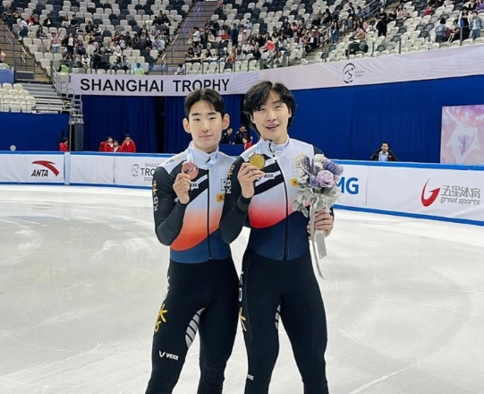 ![]() 2023 상하이트로피 쇼트트랙대회에서 메달 획득한 홍경환(좌), 임용진(우) 선수 |