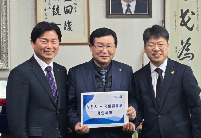 ![]() 조용익 부천시장, 설훈 국회의원, 진현환 국토교통부 제1차관이 부천시 지역 현안 관련 면담을 마친 후 기념사진을 촬영하고 있다. |