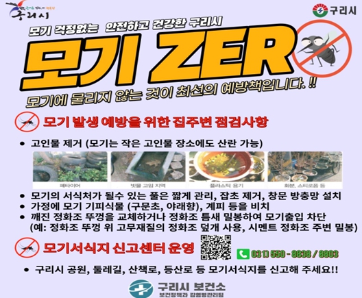 구리시보건소는 지난 4년간 구리시 방역민원 빅데이터 분석을 통해 겨울철이 모기의 생존력이 가장 떨어지는 시기이며, 모기유충은 추위를 피해 하수구, 정화조 등 제한된 곳에서 서식하기 때문에 효율적인 방제 작업이 가능하다고 전했다. 이에 따라 전문 방역업체를 통해 단독주택 정화조, 하수구, 물웅덩이, 둘레길 등을 대상으로 유충구제약 살포 및 연막 소독을 병행해, 특별 집중 방역소독을 실시할 계획이다.