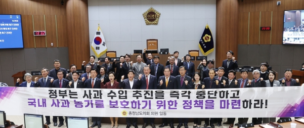 ![]() 충남도의회 ‘사과 수입 추진 반대 촉구 건의안’ 채택 |