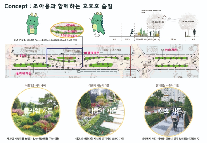 ![]() 용인특례시가 흥덕초등학교 주변 통학로에 숲길을 조성한다. 사진은 관련 설명도 |