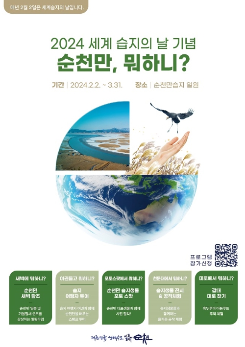 시는 2월 2일부터 3월 31일까지 순천만습지 일원에서 2024 세계 습지의 날 기념 순천만, 뭐하니 특별 프로그램을 운영한다.