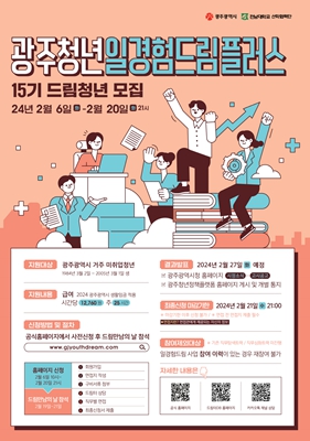 문의는 카카오톡채널 ‘광주청년드림’과 광주청년 일경험드림플러스 사업단으로 하면 된다.