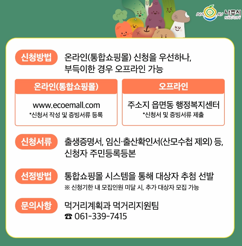 ![]() 나주시 “임산부에 친환경농산물 꾸러미 드려요” |