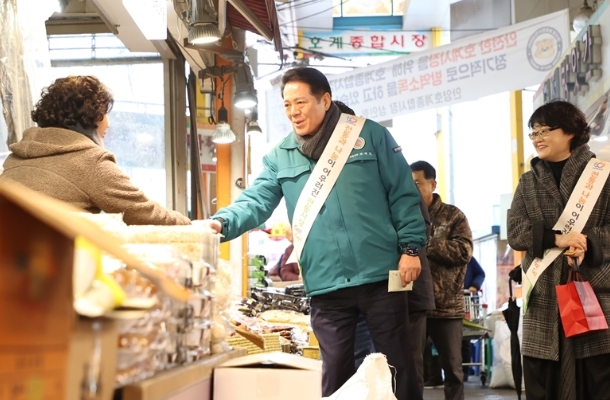 그는 이틀에 걸쳐 전통시장 내 각 점포를 돌며 명절 물가동향을 파악했으며, 경기침체와 고객 감소로 어려움을 겪고 있는 상인들, 시장을 찾은 시민과 소통하며 다양한 건의 사항을 수렴했다.