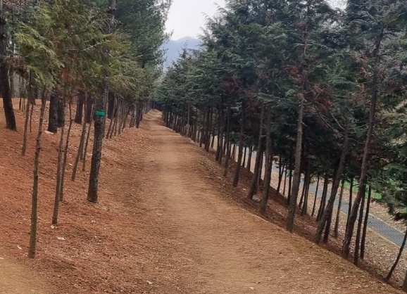 먼저 연지근린공원 편백나무길에 450m 길이의 황톳길을 조성한다.