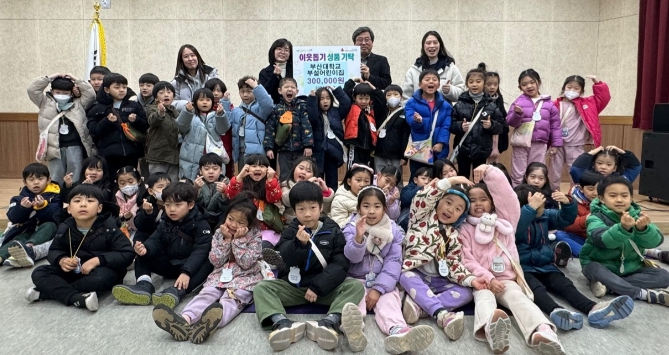 이 성금은 부산대학교 부설 어린이집이 주최한 아나바다 장터에서 원아들이 사용하지 않는 책, 옷, 장난감 등을 가져와 직접 판매한 수익금과 아이들의 용돈으로 마련한 기부금을 모은 것으로, 어려운 이웃을 위해 사용해 달라며 장전1동 행정복지센터에 전달했다.