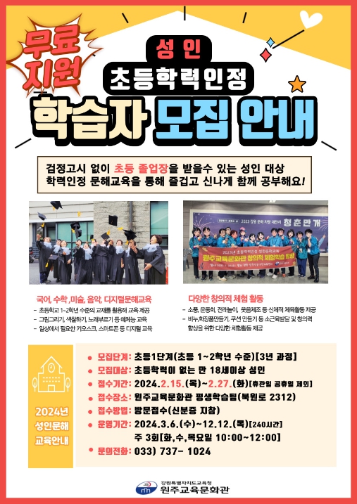 ![]() 2024 초등학력인정 성인문해교육 홍보 안내문 |