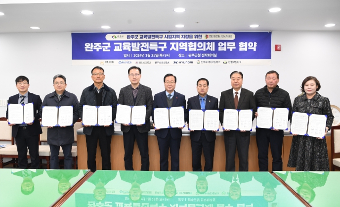 또한, 지난달 25일에는 완주교육지원청, 군의회, 우석대학교, 원광보건대학교, 전북하이텍고, 한별고, 완주산단진흥회, 현대자동차(주)전주공장 등 9개 기관·단체와 지역협의체를 구성해 완주형 교육 모델 발굴에 역량을 결집했다.