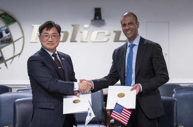 ![]() 왼쪽부터 조창래 대한민국 국방부 국방정책실장,비핀 나랑 미합중국 국방부 우주정책수석부차관보 |