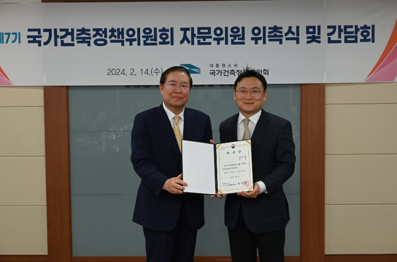 국가건축정책위원회는 건축기본법에 따라 설립된 대통령소속 위원회로 ‘08년 출범 이후 국가 건축정책의 비전과 목표를 제시하고 관계 부처 건축정책의 심의·조정 역할을 하고 있으며, 위원장을 포함한 민간 위원 17명과 기재부·국토교통부 장관 등 당연직 위원 11명, 자문위원 25명으로 구성된다.