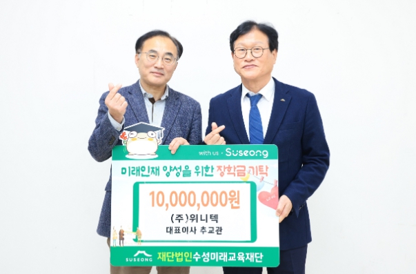 ![]() 추교관 ㈜위니텍 대표, 수성미래교육재단에 장학금 1천만원 기탁 |