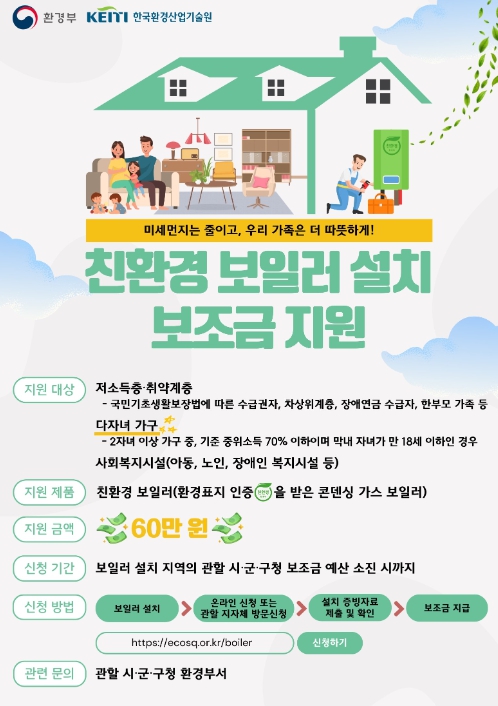 ![]() 2024년 ‘가정용 친환경 보일러’ 설치비 지원 |