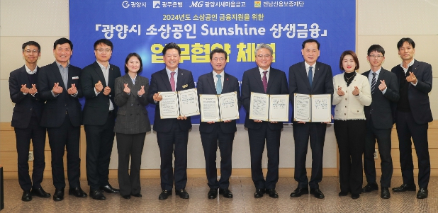 업무협약은 협약서 서명, 기념 촬영 순으로 이뤄졌으며, 광양시 ·전남신용보증재단 ·광주은행 ·광양시새마을금고 간의 특별보증 출연 협약과 광양시 ·광주은행 ·새마을금고 간의 융자금 이차보전 지원 협약 등 2건으로 진행됐다.