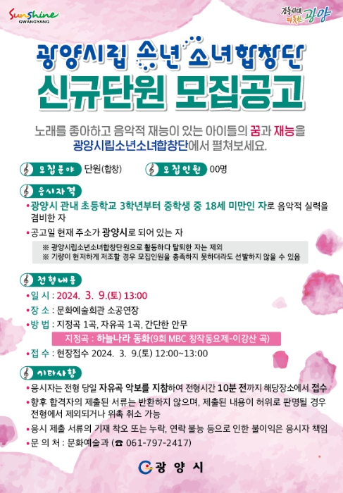 ![]() , ‘광양시립소년소녀합창단’ 신규단원 모집 |