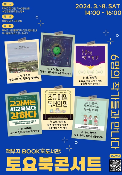 ![]() 책부자 BOOK富(북부)도서관이 초대한 6명의 작가, 토요북콘서트에서 만나요 |