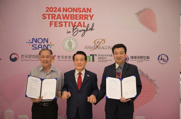 방콕에서의 둘째 날, 오전 일정부터 커다란 선물 같은 소식을 전해왔다. 바로 세계 각지 7개국(베트남, 미얀마, 라오스, 태국, 일본, 미국, 인도네시아)과 2,300만 불의 수출협약을 맺은 것이 바로 그것이다. 특히 딸기의 대표적인 생산국으로 알려진 미국, 일본도 수출 협약을 맺었다는 점은 논산 딸기의 가능성을 증명하는 대목이다.