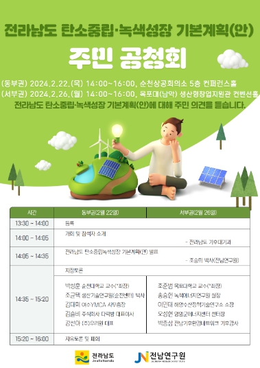 동부권 공청회는 22일 오후 2시 순천 상공회의소 5층 컨퍼런스홀에서, 서부권 공청회는 오는 26일 오후 2시 목포대학교 남악캠퍼스 생산형창업지원관에서 진행된다.
