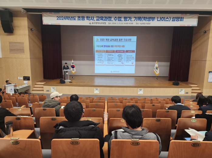 울산교육청은 학사 등 관련 업무 교원 230여 명이 참석한 가운데 지난 21일 시교육청 대강당에서 ‘2024학년도 초등 학사, 교육과정, 수업, 평가, 기록(학생부·나이스) 설명회’를 열었다.