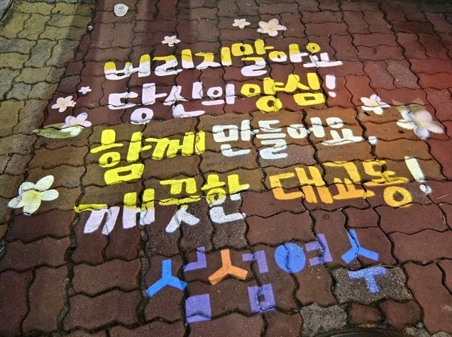 이번 활동은 청정 전남 으뜸 만들기 사업 일환으로 그림자 조면은 △‘버리지 말아요, 당신의 양심! 함께 만들어요, 깨끗한 대교동!’ △ ‘잠깐! 종량제 봉투 아끼려다 과태료 100만 원 이하 부과, 쓰레기 무단투기 금지’ 문구를 담았다.