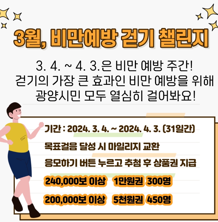 ![]() 광양시, 워크온‘3월 비만예방 걷기 챌린지’운영 |