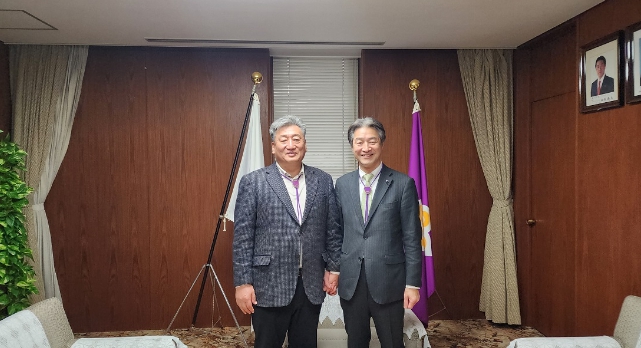 ![]() 지난 2월 15일 신안군의회는 교토부의회를 방문했다. (왼쪽부터) 신안군의회 김혁성 의장, 교토부의회 이시다 무네히사 의장 |
