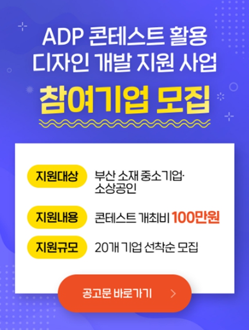 (재)부산디자인진흥원은 26일 부산 지역 기업의 상품 경쟁력 확보와 디자인 기업·디자이너의 역량 강화를 위한 ‘중소기업·소상공인 디자인 개발 지원’ 수혜기업을 아시아디자인플랫폼(ADP)을 통해 모집하고 있다고 밝혔다