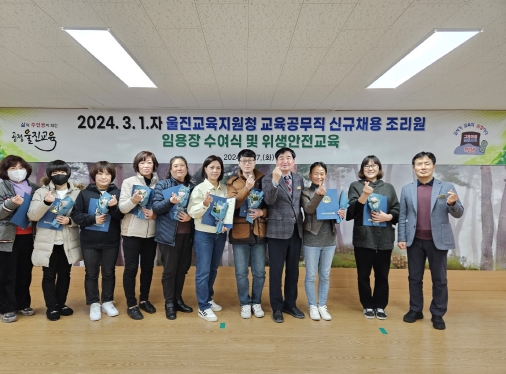 이번에 임용장을 수여받은 조리원은 2024년도 제1회 경상북도교육감 소속 교육공무직원 신규채용 절차를 거쳐 임용됐으며, 2024. 3. 1.자로 울진군 관내 학교 급식소에서 근무하게 된다.