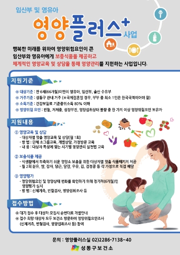 ![]() 성동구가 영양플러스사업에 참여할 대상자를 연중 모집한다. |