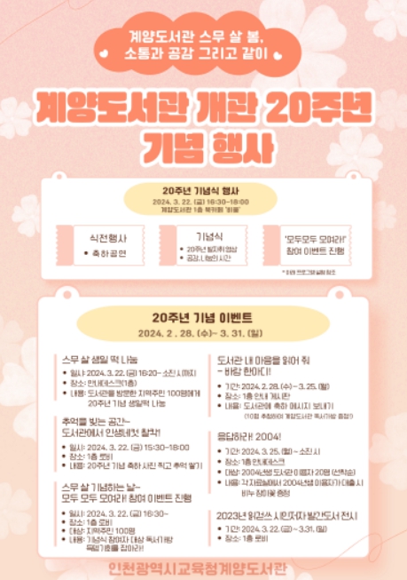 ![]() 계양도서관 개관 20주년 기념행사 포스터 |