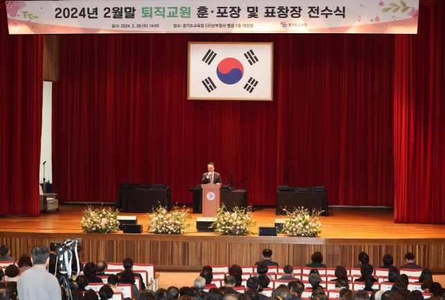 수여식 행사는 경기교사필하모닉 오케스트라의 축하 연주를 시작으로 교육가족 참여 동영상 상영, 퇴직 교원 대표 소감 발표, 임 교육감 축사, 훈․포장 및 표창장 전수, 기념사진 촬영 순으로 이어졌다.