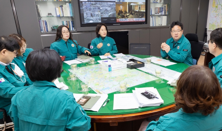 ![]() 김현수 제1부시장(오른쪽)과 공직자들이 회의를 하고 있다. |