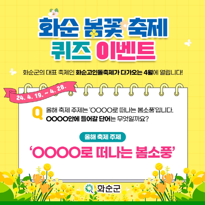 이벤트 참여자 중 50명을 추첨하여 커피 기프티콘을 지급할 예정이며, 당첨 결과는 3월 15일 화순군 공식 SNS를 통해 확인할 수 있다.