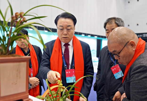 ![]() 구복규 화순군수가「2024 제3회 중국춘란축제」에 참관하여 중국 춘란에 대해서 설명을 듣고 있다. |
