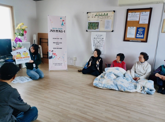 ‘건강 챙기슈~!’는 자연부락 경로당에 직접 찾아가 일상생활에서 자주 찾아볼 수 있는 건강 문제를 주제로 교육하는 프로그램이다.