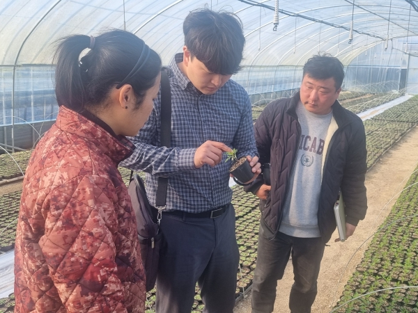 ![]() 2월 27일 칠량면의 봄초화 위탁농가에서 우량 꽃묘 생산을 위한 컨설팅을 실시하고 있다. |