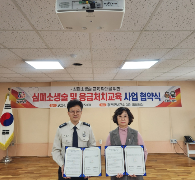 홍천군보건소와 홍천소방서는 2월 28일 홍천군 심폐소생술 및 응급처치교육 사업 수행에 관한 업무 협약을 체결했다고 밝혔다.