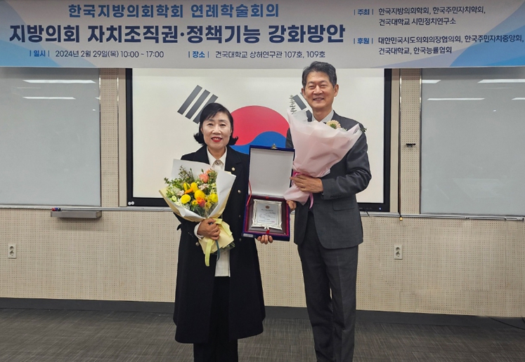 ![]() 한국지방의회학회 의정대상 수상한 이천시의회 송옥란 의원 |