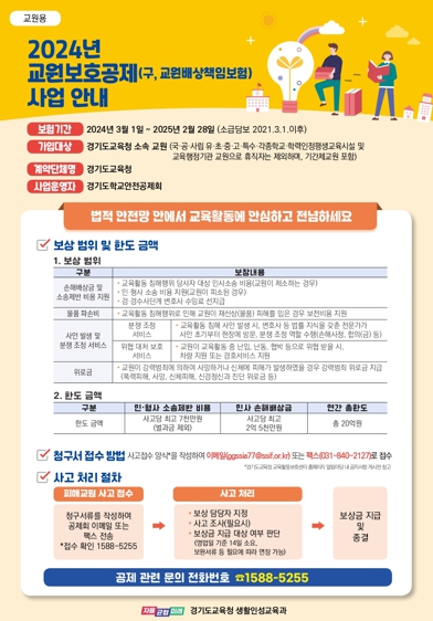 한편 교원보호공제 사업 개선안은 3월 1일부터 적용되며 대상은 국·공·사립 유·초·중·고·특수·각종학교 및 학력인정 평생교육 시설 교원(기간제교원 포함)이다.