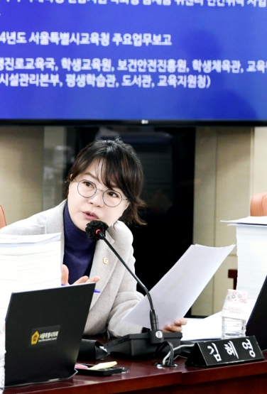 이날 김혜영 의원은 업무보고 자리에 출석한 서울시교육청 교육정책국장을 상대로 “서이초 교원 사망 사건으로 인해 교권회복에 대한 목소리가 높지만 일반 교사들과는 달리 특수한 위치에 있는 영양교사들이 겪고 있는 고충은 상대적으로 주목받지 못하고 있는 것이 현실”이라고 발언했다.