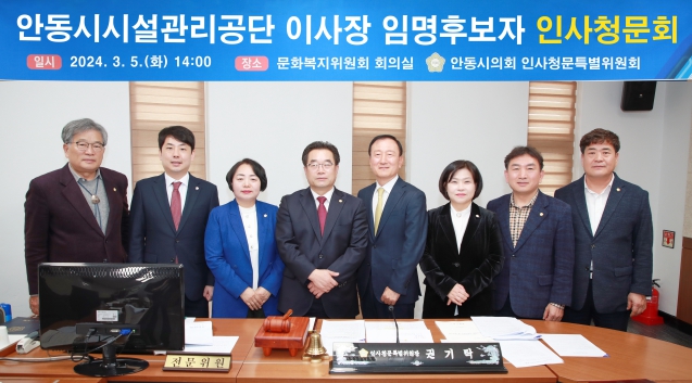 ![]() 안동시의회 인사청문특별위원회, 시설관리공단 이사장 후보자 인사청문 실시 |