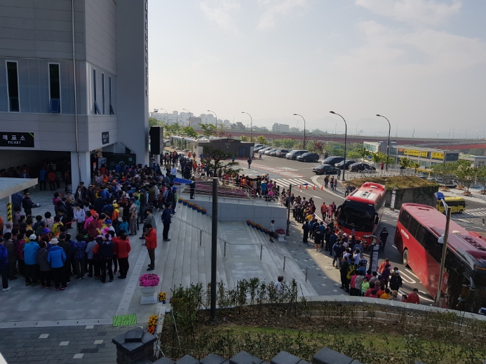 ![]() 사천바다케이블카를 방문한 단체 관광객들 |