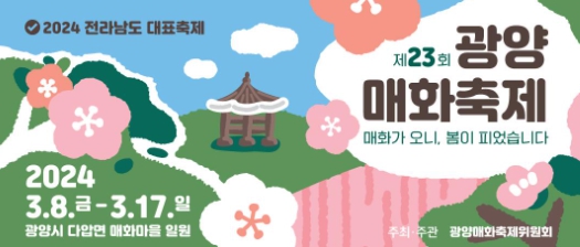 올해로 제23회를 맞는 광양매화축제는 오는 8일부터 17일까지 ‘광양 매화, K-문화를 담다’라는 주제와 ‘매화가 오니, 봄이 피었습니다’를 축제 슬로건으로 열흘 간 개최된다.