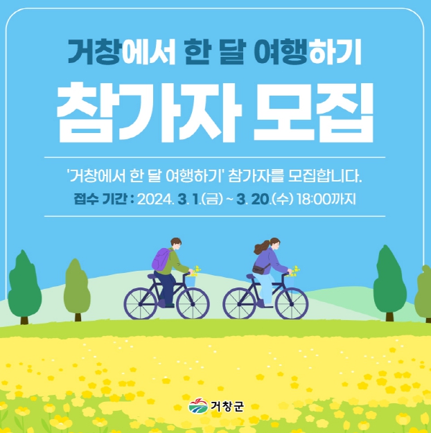 ![]() 거창군, 거창에서 한 달 여행하기 참가자 모집 |