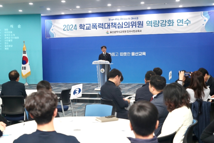 울산교육청은 지난 6일 시교육청 외솔회의실에서 학폭위 위원 100명이 참석한 가운데 ‘2024학년도 상반기 학교폭력대책심의위원 역량 강화 연수’를 열었다.